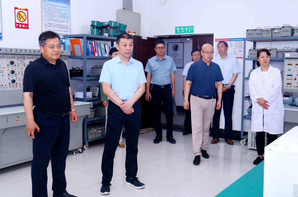 杨赟一行先后实地查看了数字电子技术、模拟电子技术、机器人智能控制、融合通信、云计算等实验室,了解实验教学中心运行和管理情况。