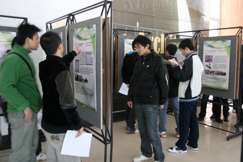 开幕式结束后,耿喜华书记、杨向荣副书记等参观了大学生科技创新成果展,并为评选“2009年度十大大学生科技创新成果”进行投票。