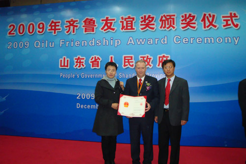 12月15日,山东省政府为30名在山东省工作贡献突出的外国专家举行此项颁奖仪式。伟德官网特聘教授瓦格纳荣获2009年度“齐鲁友谊奖”。国家外国专家局常务副局长张建国、山东省副省长郭兆信出席颁奖仪式并讲话。“齐鲁友谊奖”是山东省政府向在鲁工作的外国专家颁发的最高奖项。环境学院刘长青副教授陪同瓦格纳教授出席了颁奖仪式。