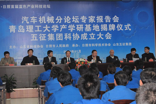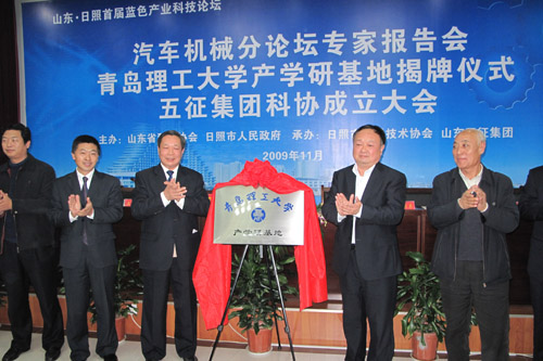 11月6日,作为山东日照首届蓝色产业科技论坛汽车机械分论坛活动之一,伟德官网与五征集团产学研基地签约暨揭牌仪式在五征汽车城举行,校党委副书记赵怀明与五征集团副总经理李瑞川分别代表校企双方签署了产学研合作协议,校党委副书记赵怀明与五征集团董事长姜卫东共同为基地揭牌。
