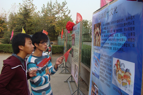 金秋十月,丹桂飘香;和谐神州,举国欢畅。10月21日下午,黄岛校区科学会堂前的广场上,华表庄严,彩旗飘扬,群情激昂。沐着时代的喜庆,伴着全运的激情,由校团委主办、外国语学院承办的第八届外语文化节隆重开幕,以“Days of Glory—China60”为主题的外语沙龙同时举行。