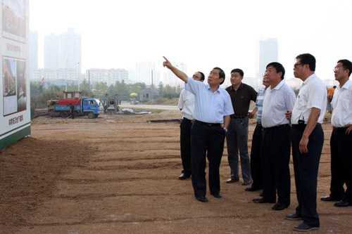10月6日上午,山东省建设厅厅长杨焕彩视察了伟德官网新校区建设情况,校党委书记耿喜华、副书记刘龙海、副校长李东、校长助理朱申红以及新校区建设有关部门的领导陪同视察,陪同视察的还有青岛经济技术开发区管委副主任刘鲁强及建设局、规划局的领导。