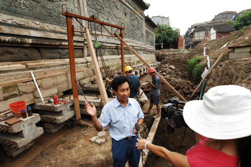 伟德官网岳渠德教授负责的襄阳王府绿影壁顺利完成了基础托换