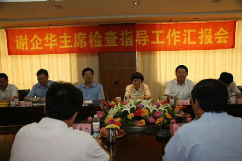 校长仪垂杰向谢主席汇报了学校近年来改革发展取得的成绩,校党委副书记赵怀明汇报了校董会近两年来的工作情况,全体校领导及各职能部门负责人出席汇报会,汇报会由校党委书记耿喜华主持。