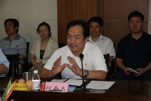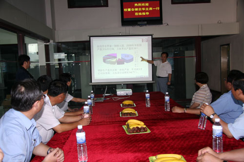 仪校长在汇报中介绍了学校近年招生就业工作的喜人形势、在学科建设和科学研究方面采取的主要措施和取得的突出成绩。近年来,学校在建设高质量大学的征程上,始终把学科建设和科技创新作为学校各项工作的重中之重。06年4月22日,学校隆重召开科技大会,明确提出了构筑“有山有峰”的学术研究梯队,打造“国家级节能环保冶金装备工程技术平台”和“青岛建筑科技中关村”两大学科建设目标,学校的学科建设水平和科研实力显著提高,服务社会发展的能力大大增强。