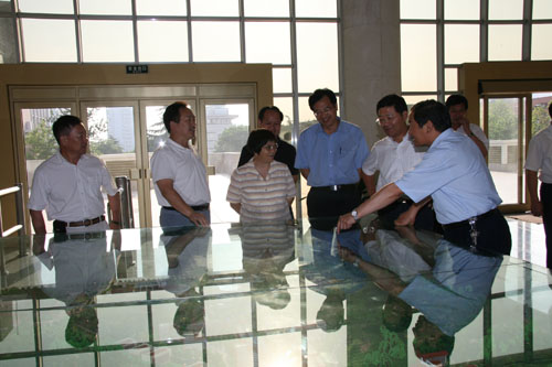 汇报会结束后,谢主席一行在校领导的陪同下,观看了校区沙盘模型,参观了结构实验室和能源与环境装备工程技术中心,并听取了仪垂杰校长“高温异质离散运动颗粒间传热传质机理研究”项目的介绍。