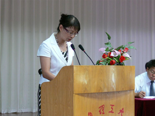 工程管理系工程造价专业学生王承辉代表2009届毕业生发言。他回顾了三年的学习生活,表达了对母校和老师的感谢之情,表示今天我们以理工大学为荣,明天理工大学将以我们而骄傲。