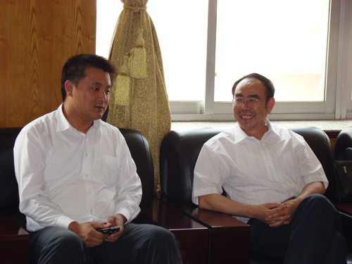 朱申红助理向张建刚一行介绍了校区的基本情况及当前学校发展的良好势头。保卫处副处长于奇、学生处副处长王维介绍了校区安全稳定工作的情况。