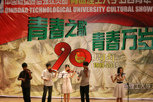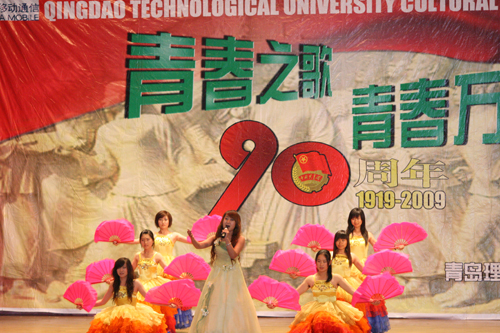 用欢歌曼舞祝福祖国,用五四精神激发青年使命。5月4日晚,由校团委主办的纪念五四运动90周年文艺晚会在黄岛校区科学会堂激情上演。校区办公室主任齐德义、副主任梁红,校团委副书记王龙、人文学院党总支副书记林桂梅以及各学院的老师、学生共1000余人观看了演出。