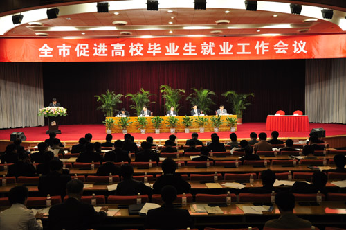 4月8日青岛市政府在市级机关会议中心召开全市促进高校毕业生就业工作会议。