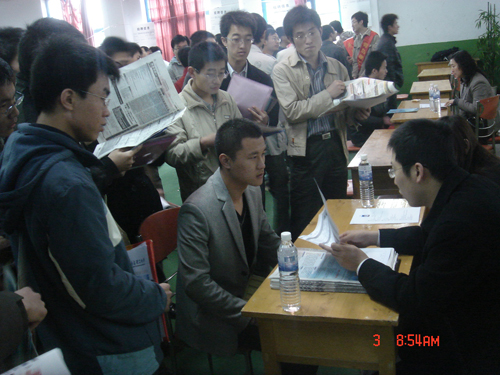 面对2009年严峻的就业形势,在招生与就业委员会办公室大力指导和帮助下,环境学院党政领导班子、教研室主任以及专业教师全员出动,积极沟通关系、深挖各方资源,力邀用人单位来校参加毕业生专场招聘会。4月3日上午,伟德官网在大学生俱乐部举行了能源与环境类专业专场招聘会,为促进毕业生充分就业提供服务。