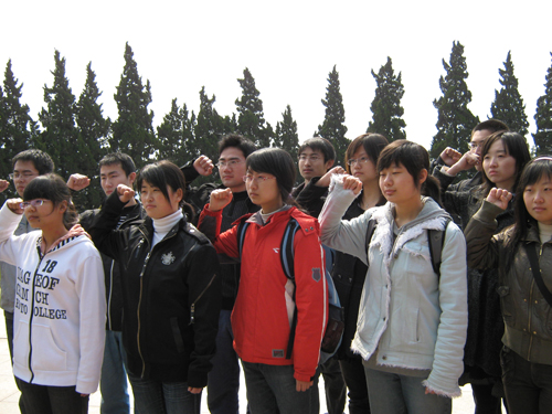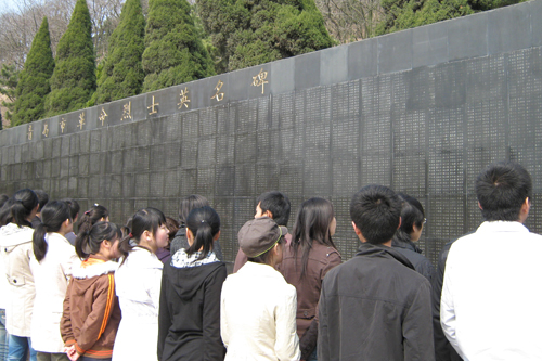 4月3日清明节前夕,为深入学习实践科学发展观,增强党性意识,校团委组织部分党员、党员发展对象和学生干部代表来到青岛市革命烈士陵园参加了青岛市纪念青岛解放60周年悼念革命先烈大会暨清明节扫墓活动。
