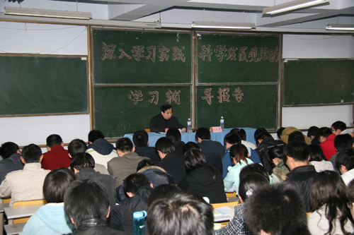 为使广大学生党员进一步明确参加深入学习实践科学发展观活动的重要意义,切实增强开展学习实践活动的自觉性和坚定性,积极投入到学习实践活动中来,3月24日、25日,校深入学习实践科学发展观活动领导小组学生工作组邀请校学习实践活动领导小组副组长、校党委副书记杨向荣就大学生党员深入学习实践科学发展观活动,分别为四方、黄岛两校区学生党员做学习辅导报告。学生处处长沈文青、副处长王维分别主持报告会,两校区全体学生党员参加报告会。
