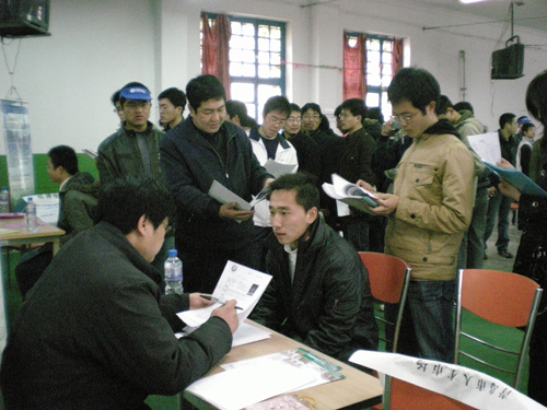 针对2009届毕业生就业工作,机械学院已成功举办多次专场小招会,此次大型招聘活动得到了招就办、学生处、保卫处等部门的大力支持和协助,开启了机械学院新学期毕业生就业的“信心之旅”。(机械学院 张建军 刘海英)