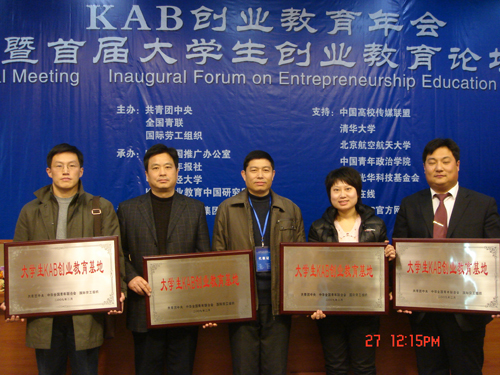 2月28日,从在北京召开的KAB创业教育(中国)项目2008年会暨首届大学生创业教育论坛上传来好消息,共青团中央、全国青联、国际劳工组织联合授予伟德官网“大学生KAB创业教育基地”称号,获此称号的还有同济大学、南开大学等15所高校。招生就业委员会办公室杨波老师代表学校参加了年会和颁奖仪式。
