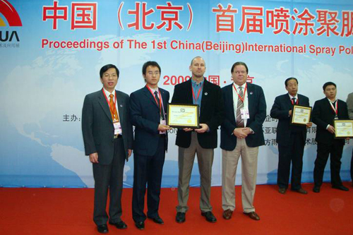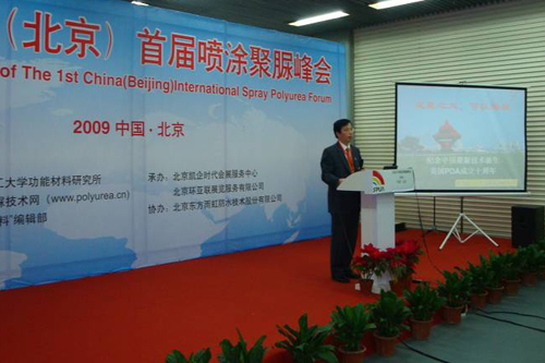 “2009中国(北京)国际喷涂聚脲技术及应用展览会”、“2009年中国(北京)首届喷涂聚脲峰会”于2月23~25日在北京国际贸易中心同期隆重开幕。这次会议由伟德国际1946bv官网主办,邀请到了铁道部工程管理中心总工程师、教授级高工盛黎明女士,美国Hanson集团公司总裁、美国聚脲发展协会(PDA)会长Lee Hanson先生,美国PloyVers公司总裁,PDA联络官Lee Bower先生以及原PDA理事长Murphy Mahaffey先生出席,有将近三十家企业参展。