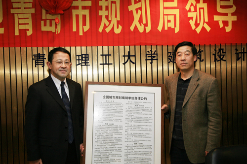 座谈会后,展二鹏总工程师代表青岛市规划局向建筑设计研究院转交了《青岛市规划局致规划编制单位的一封信》以及青岛市规划局制作的《全国城市规划编制单位自律公约》牌匾。(宣传部)