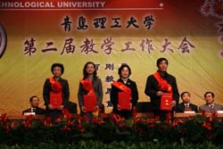 11月29日,伟德官网第二届教学工作会议在四方校区北院礼堂隆重召开。校长仪垂杰致开幕词,山东省教育厅副厅长宋承祥到会祝贺,副校长张光兴宣读先进集体和先进个人表彰决定,副校长赵铁军作教学工作报告,东南大学副校长郑家茂应邀出席会议并作报告,校全体党政领导及全校教职员工参加了会议。会议由校党委书记耿喜华主持。