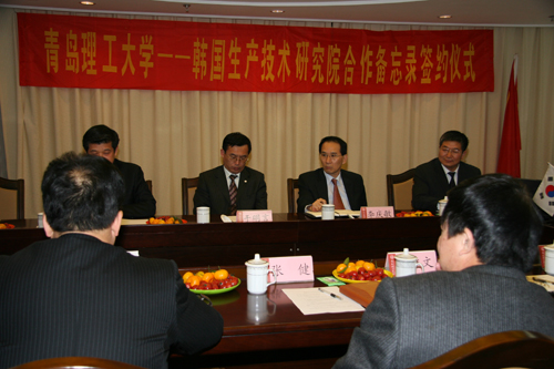 11月12日,伟德官网与韩国生产技术研究院合作备忘录签订仪式在图书科技楼会议室举行。校长仪垂杰、韩国生产技术研究院院长罗璟焕分别讲话并代表双方在合作备忘录上签字,副校长张健、韩国生产技术研究院国际总管室室长金容宽、中韩生产技术协作中心主任李庆敏、青岛市国内经济合作办公室副主任于明言、青岛市国内经济合作办公室投资促进处处长张廷天等出席签字仪式。