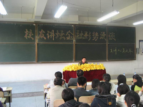 吴教授结合自身工作就金融领域专业知识为同学们做了精彩的讲解,吴教授从企业的重大决策、利益分配、人事任免、员工激励四个方面着重论述了“财务和会计”在现代企业中的作用。针对当前国际经济形势,吴教授结合专业和实践从宏观经济与微观经济、虚拟经济与实体经济、国内与国外三个方面讲述了如何应对金融、粮食、能源等全球性危机。整场讲座内容新颖实用,具有很强的时效性、针对性和指导性,受到了广大学生的好评。(团委)