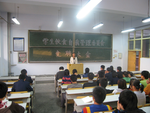 此次伙管会第一次采取竞聘制,目的在于充分调动广大同学的工作积极性,使新一届伙管会在工作方式、工作效率及工作质量上得到更好的完善。(饮食服务中心)