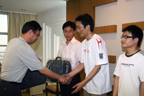 杨向荣副书记代表学校为每位志愿者发放了2000元奖金。他说,你们能够选择奔赴西部,到祖国和人民最需要的地方去,到一个艰苦的地方去,开创事业、奉献青春和热情,这是非常勇敢的行为,需要有无私奉献的精神。这也是非常宝贵的精神财富,希望你们能够珍惜机会,克服困难,把爱心、智慧和力量奉献给西部!