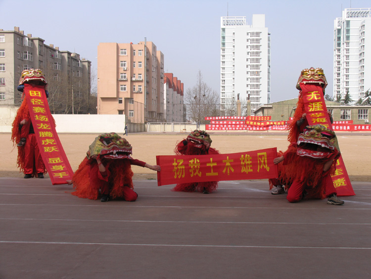 开幕式后,校幼儿园的小朋友以及土木学院的同学们进行了精彩的节目表演。场上此起彼伏的口号声、欢呼声,一浪高过一浪,把开幕式的热烈气氛推向了高潮。开幕式的圆满结束,拉开了春季运动会为期两天比赛的序幕。(杨延生)