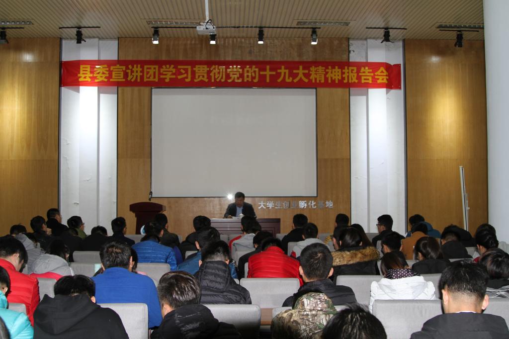 11月22日,费县宣讲团学习贯彻党的十九大精神报告会在校区孵化基地报告厅举行,费县宣讲团成员、县政府办公室党组成员、副主任、县侨外办主任李照华作宣讲报告。校区办公室副主任窦传海主持报告会,200余名师生代表聆听了报告。
