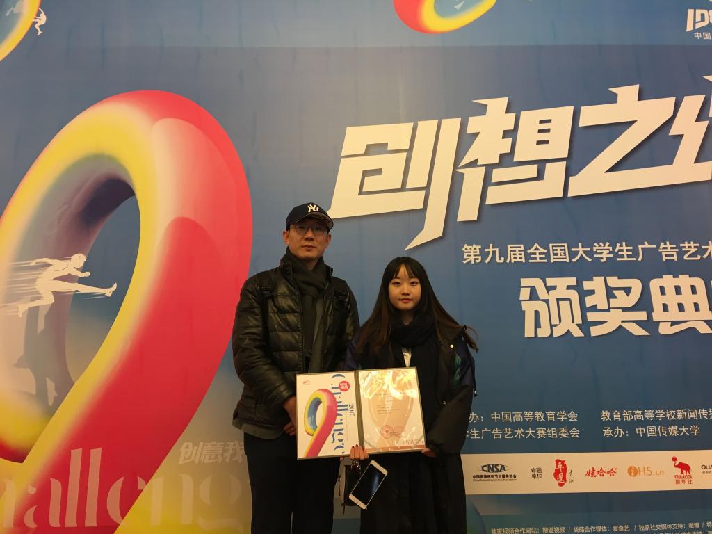 近日,第九届全国大学生广告艺术大赛颁奖典礼暨第十届全国大学生广告艺术大赛启动仪式在全国政协礼堂隆重举行,人文学院潘悦、刘祖瑜同学的作品《平遥·传说》获得策划类三等奖。辅导员老师陈刚和学生潘悦参加了此次颁奖典礼。