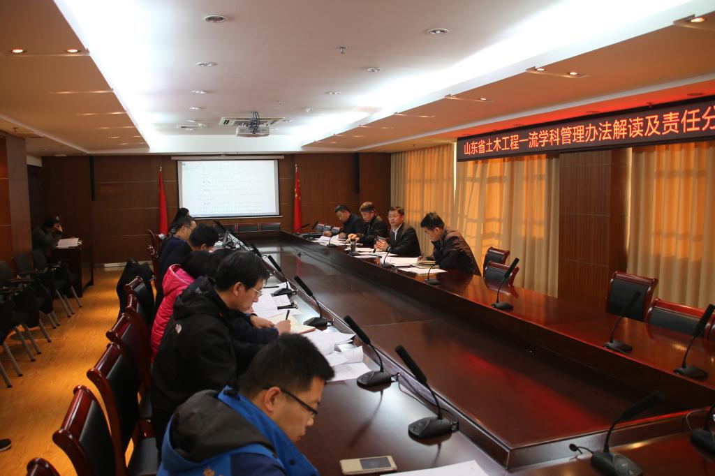 姜培刚就《伟德国际1946bv官网一流学科建设管理办法》和《伟德国际1946bv官网大学一流学科建设项目专项资金使用管理办法(试行)》等相关管理办法进行了解读。李思忠对伟德官网2017年一流学科经费执行情况及2018年经费使用注意事项进行介绍。张春巍教授结合《山东省土木工程一流学科建设目标任务书》,对涉及的部分从预期建设成果、年度建设措施、经费使用预算等几个方面进行责任分解。