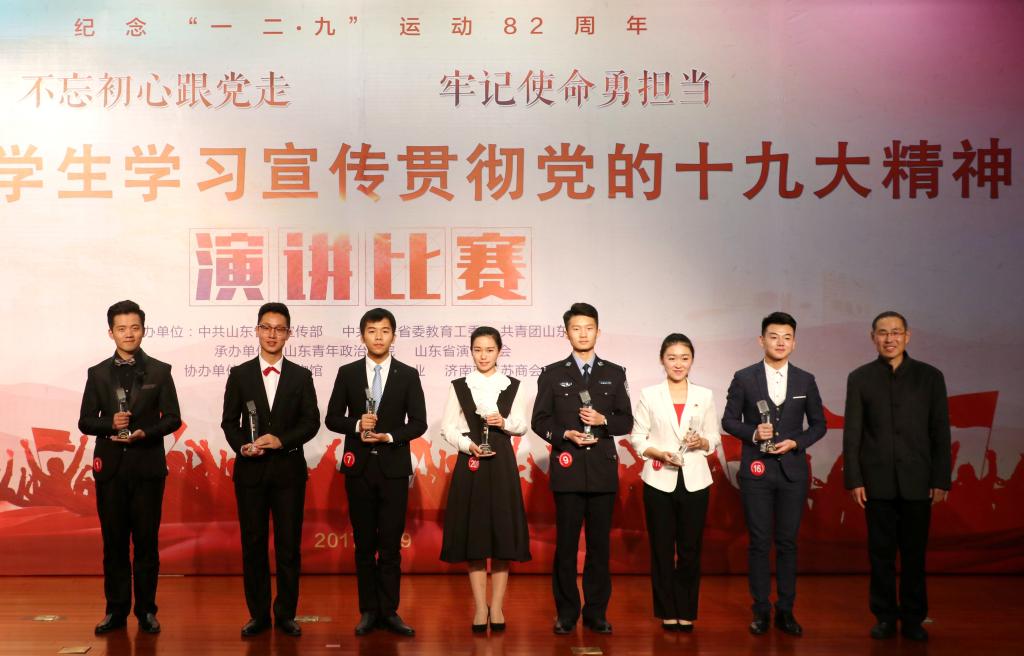 演讲比赛由省委宣传部、省委高校工委、共青团山东省委联合举办,以“不忘初心跟党走牢记使命勇担当”为主题,旨在深入学习宣传贯彻党的十九大精神,教育引导大学生进一步坚定理想信念,增强责任感、使命感,激发担当精神,为实现中华民族伟大复兴而不懈奋斗。比赛分初赛、复赛、决赛三个阶段进行,自11月上旬启动以来,全省107所高校万余名学生参加了初赛,经过选拔推荐,最终20名选手进入决赛。