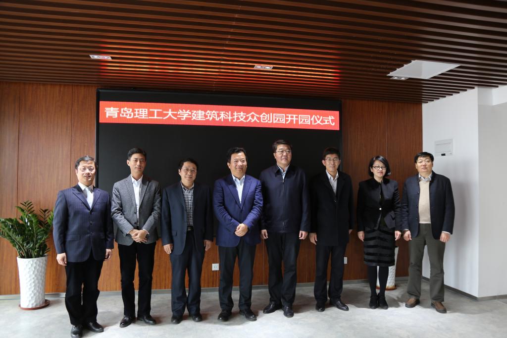校党委书记、校长王亚军,市北区委书记郑德雁为建筑科技众创园开园揭牌