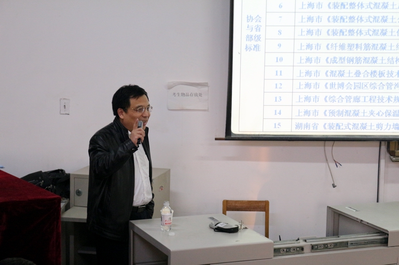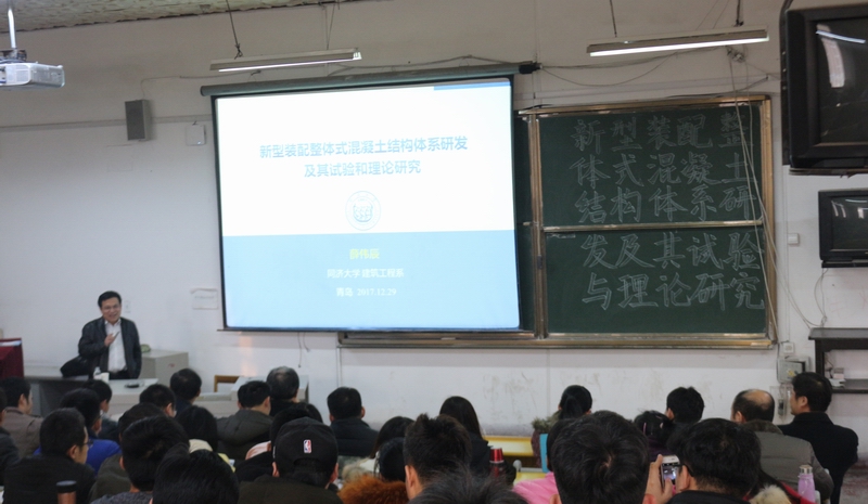 薛伟辰教授详细介绍了他近二十年来在装配整体式混凝土框架结构、装配整体式混凝土剪力墙、预制混凝土夹心保温外墙、预制预应力混凝土综合管廊领域所做的体系研发、试验及理论分析和工程应用情况。报告结尾,薛伟辰与现场师生们进行了互动交流,热情的回答了师生们的提问,并教导研究生和年轻教师应该对学术工作心怀敬畏之心,保持严谨求实的态度进行科学研究。