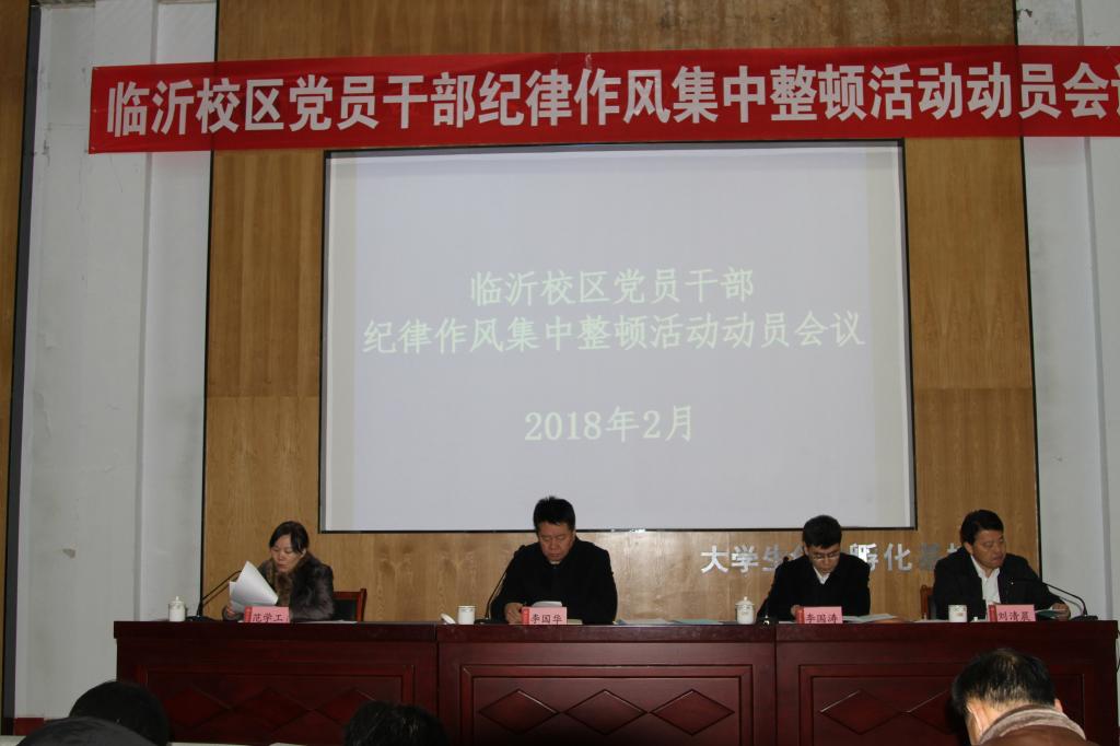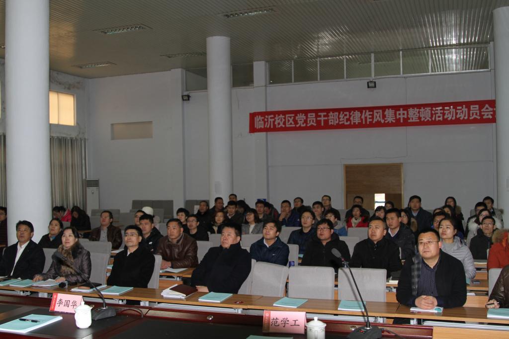 会上,范学工传达了临沂市委书记王玉君在全市党员干部纪律作风集中整顿活动动员会议上的讲话精神;刘清晨传达了《临沂校区党员干部纪律作风集中整顿活动实施方案》。