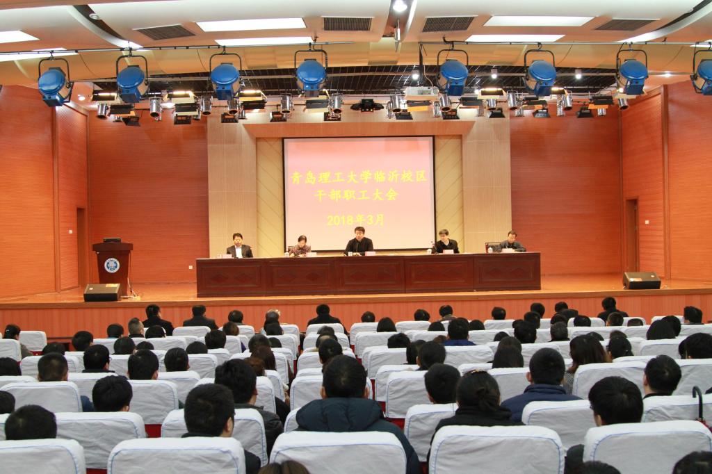 3月4日下午,临沂校区在图书馆报告厅召开2018年全体教职工大会,学校党委常委、副校长、临沂校区党委书记李国华出席并讲话,校区领导李国涛、范学工、崔洪俊、刘清晨及校区全体教职工参加,范学工主持会议。