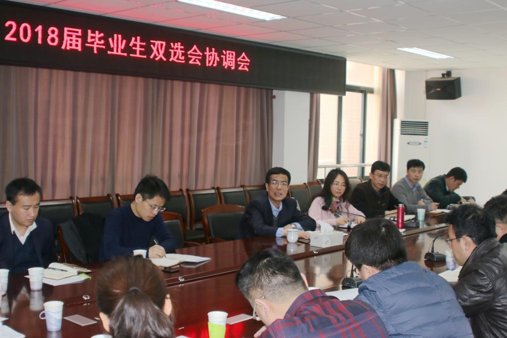 3月19日上午,副校长齐德义在嘉陵江路校区现代教育中心会议室主持召开2018年毕业生“双选会”工作协调会。学生工作处、校区办、宣传部、团委、保卫处、后勤处、国资处、教务处、各学院等部门有关负责同志参加会议。