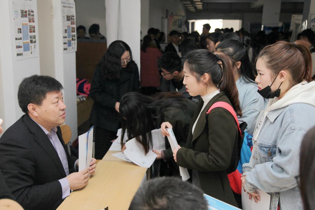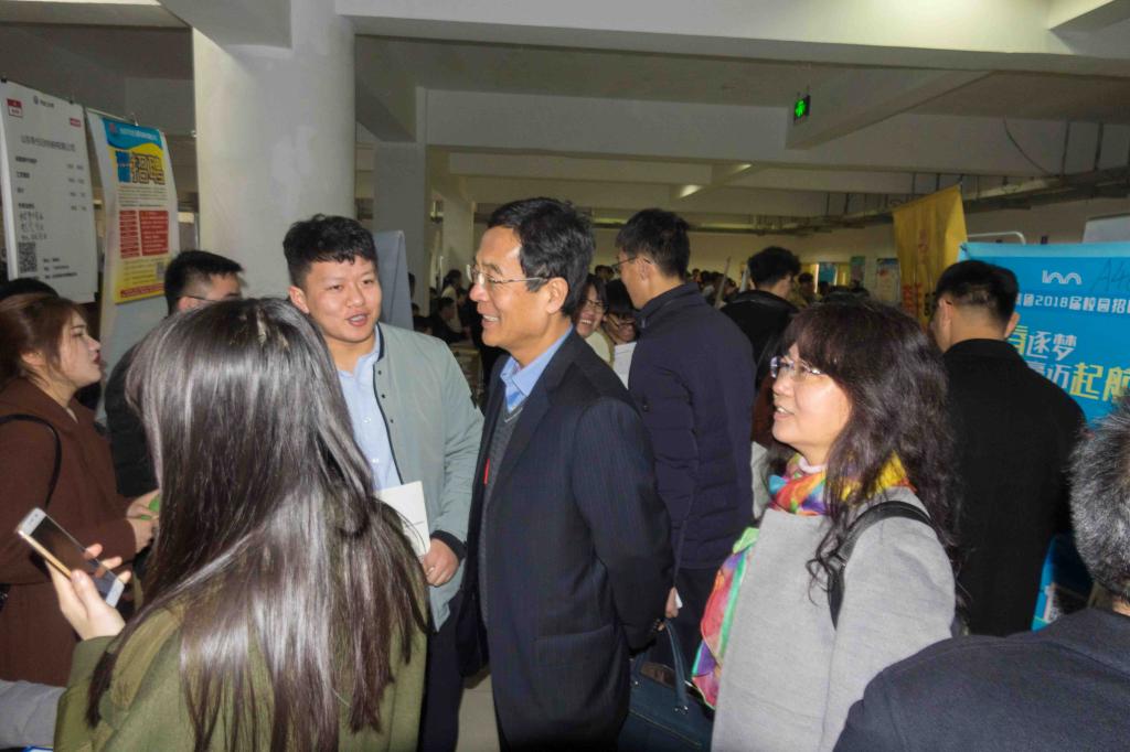 副校长齐德义及相关部门、学院负责人与招聘企业单位现场交流 摄影:申维东