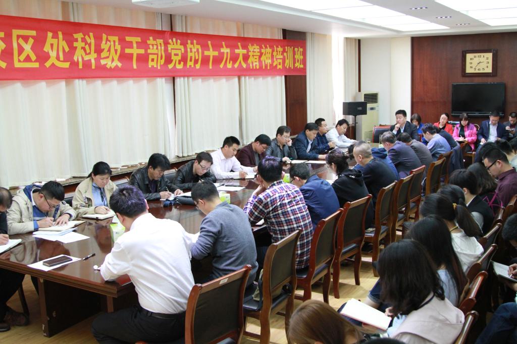 李国华作题为《学习贯彻落实十九大精神——“学进去、悟出理、干起来”》专题辅导报告,从怎样准确理解习近平新时代中国特色社会主义思想、如何贯彻落实习近平总书记“在学懂弄通做实上下功夫”的指示要求、如何用习近平新时代中国特色社会主义思想武装头脑、指导实践、推动工作三个方面进行了详细深入的理论讲解。辅导报告紧紧围绕为什么学、学什么、怎么学展开,要求校区上下要坚持不断学、反复学、深入学,做到学出忠诚、学出自信、学出格局、学出担当、学出情怀、学出本领、学出定力和学出精神;要紧密联系校区发展实际,认清形势,解放思想,敢于担当,提高执行力,提升组织力,切实把学习的过程转化为提高认识、统一思想的过程,促进校区内涵式发展,以推动工作的实际成效检验学习贯彻的效果。
