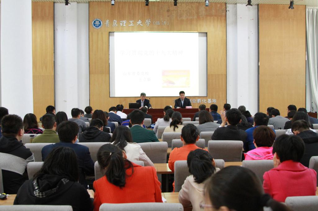 3月28日上午,中共山东省委党校党史教研部主任、硕士研究生导师王立新教授,应邀来校区作党的十九大精神专题辅导报告,学校党委常委、副校长、临沂校区党委书记李国华出席并主持报告会,校区领导班子成员和全体处科级干部、师生党员聆听报告。