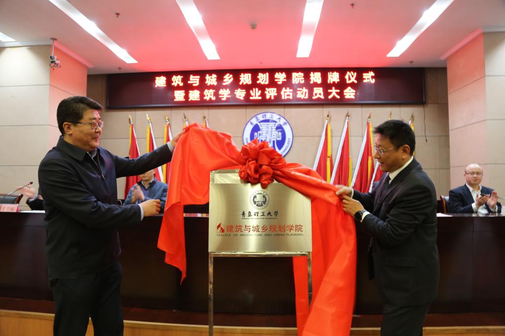 校党委书记、校长王亚军与建筑与城乡规划学院院长许从宝共同为建筑与城乡规划学院揭牌
