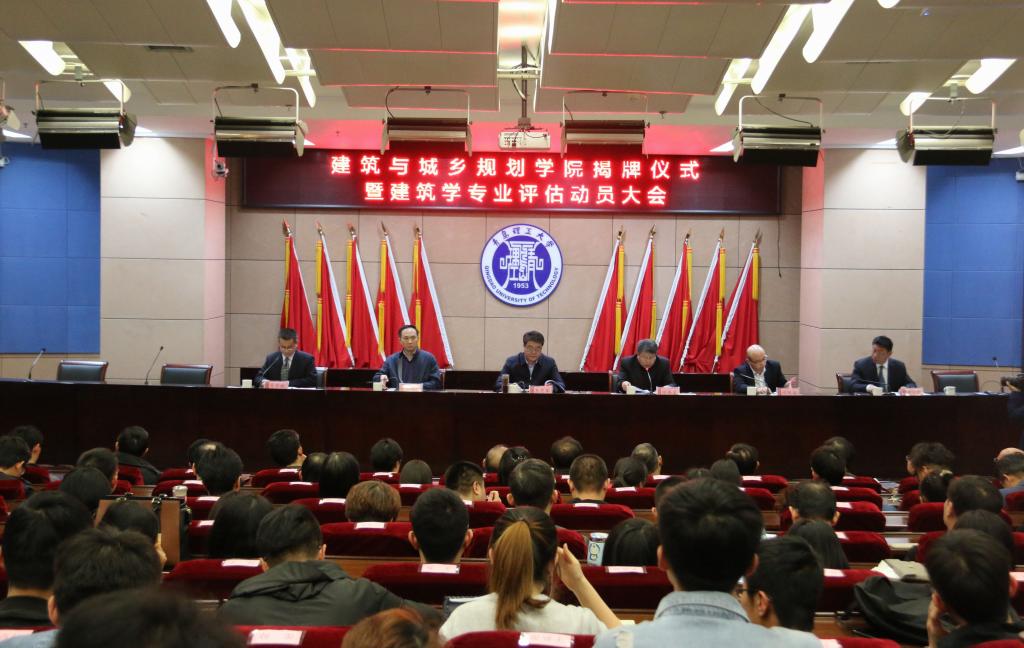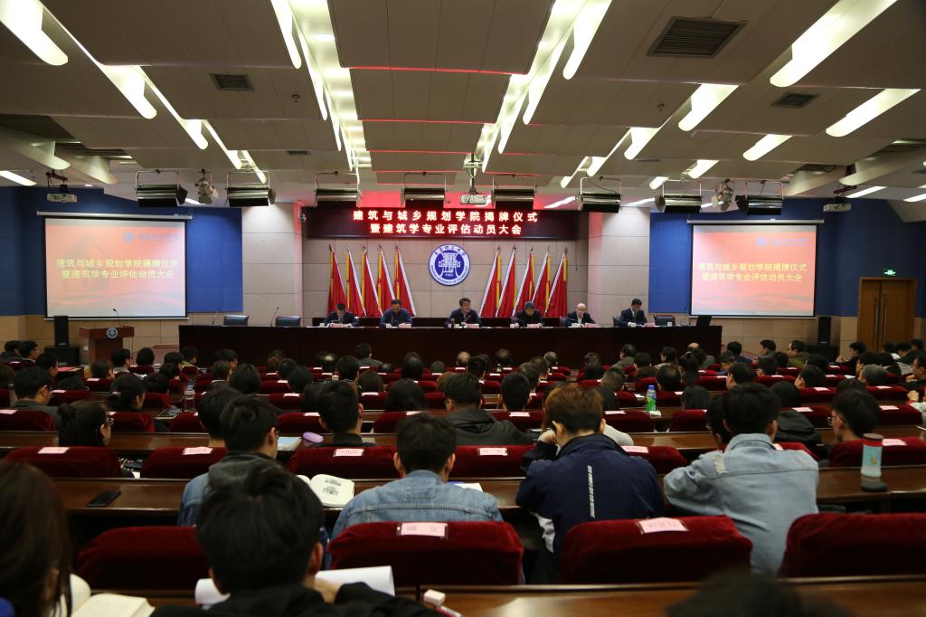4月11日下午,建筑与城乡规划学院揭牌仪式暨建筑学专业教育评估动员大会在学校学术报告厅隆重举行。校党委书记、校长王亚军,副校长张伟星,校长办公室主任、合作发展处处长郭建锋,教务处处长田艳兵,建筑与城乡规划学院全体教职员工及学生代表参加会议。会议由建筑与城乡规划学院党总支书记肖学斌主持。