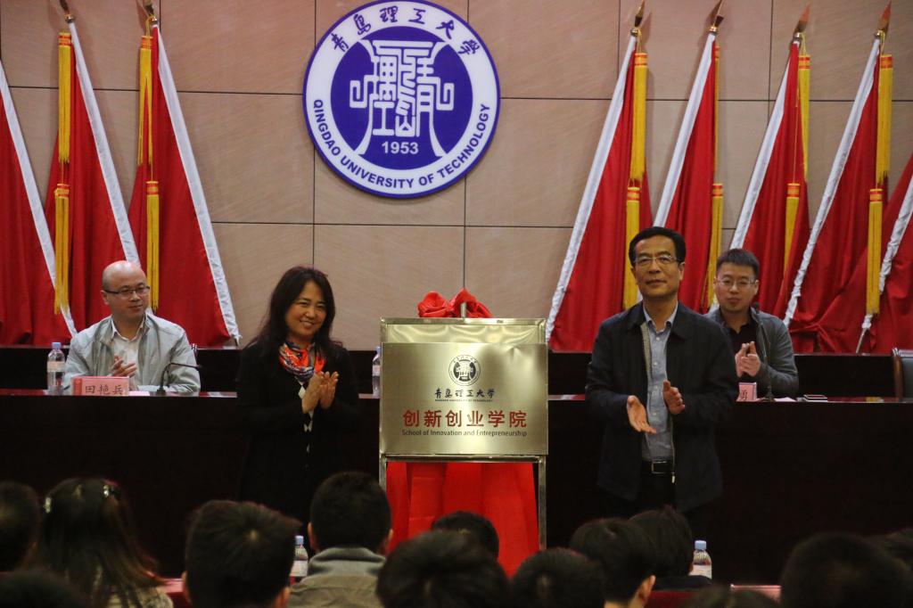 副校长齐德义与学生工作处处长、创新创业学院院长宋玲为创新创业学院揭牌