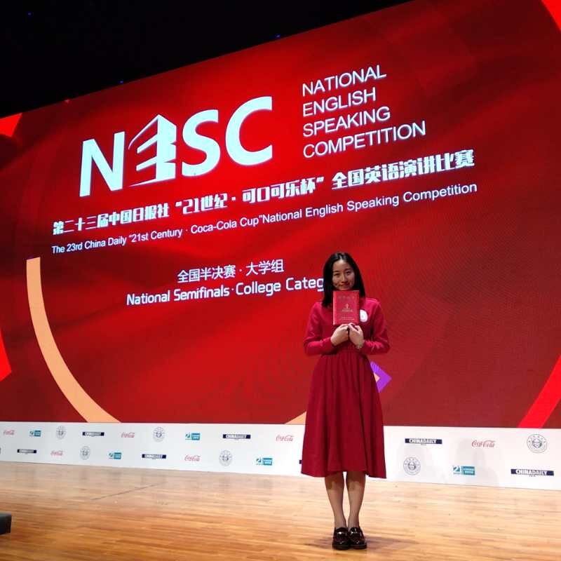 近日,第23届中国日报社“21世纪杯”全国英语演讲比赛总决赛在杭州师范大学举行,伟德官网人文与外国语学院2015级英语专业于丽园同学在毕纪芹导师的指导下赴浙参赛,荣获大学组全国三等奖。