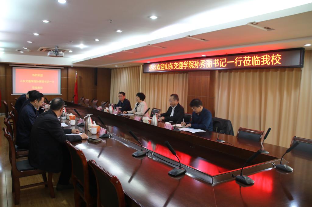 4月24日,山东交通学院党委书记孙秀丽、副书记唐勇等一行四人来伟德官网调研座谈。校党委书记、校长王亚军,党委副书记张殿恒出席座谈会,党委办公室、校长办公室、党委组织部、党委宣传部等相关部门负责人陪同座谈。
