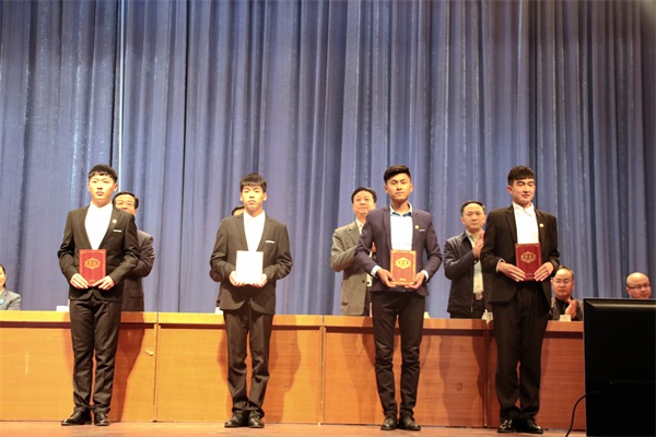 党委副书记张殿恒同志宣读《伟德官网省级优秀学生、优秀学生干部和先进班集体的获奖名单》和《共青团伟德国际1946bv官网委员会关于表彰2017年度先进集体和优秀个人的决定》。山东省“十大优秀学生”提名奖、省级优秀学生干部等受到表彰的集体和个人先后上台领奖。山东省“十大优秀学生”提名奖、省级优秀学生荣誉称号获得者土木工程学院刘昌欣同学和科技创新优秀指导教师代表机械与汽车工程学院杨发展老师分别作交流发言。