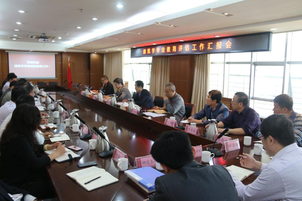 校长谭秀森致欢迎词,副校长张伟星主持汇报会,相关部门负责人、建筑与城乡规划学院班子成员、建筑与城乡规划学院各系负责人及教师代表等参加汇报会。