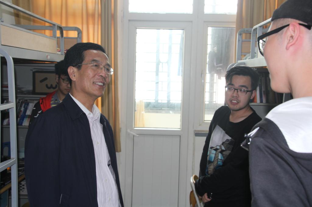 在学生公寓,齐德义十分关心学生的住宿安全及日常生活,同公寓管理人员、驻楼辅导员进行了交流,了解公寓安全、服务管理举措,并深入学生宿舍,和学生亲切交谈,询问同学们的学习、生活情况,并叮嘱同学们一定要加强安全防范意识,注意安全用电。检查中,齐德义对学生处、各学院对学生公寓管理服务工作所做的努力给予肯定,并就下一步工作强调:一是各部门、各学院要高度重视公寓安全服务工作,增强责任心,切实落实好各项教育、检查工作,对检查过程中发现的问题要及时整改;二是在日常工作中,学生工作干部要更加深入一线,切实了解学生情况,转变作风,注意方式方法,有针对性地开展好工作,让学生了解学校的各项规章制度,让每一位师生都积极参与到公寓管理工作中来,以此形成有效的教育检查整改机制,进而切实增强思想教育工作的吸引力和感染力。(撰稿:历建刚、毕记满 审核:郭兰成)