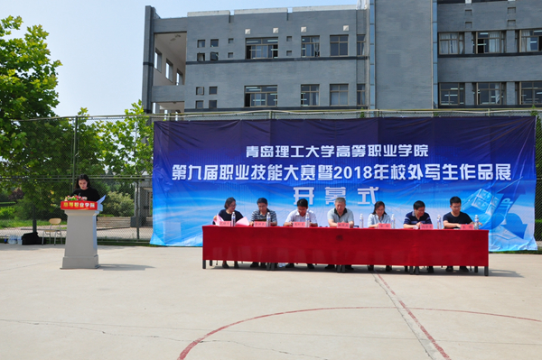 6月14日下午,高等职业学院第九届职业技能大赛暨2018年校外写生作品展开幕式在长江路校区篮球场举行。
