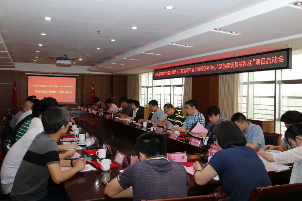 6月23日,山东省高等学校蓝色经济区工程建设与安全协同创新中心在图书科技楼1908会议室召开“绿色建筑及装配化”项目启动会。会上对获批的37项子课题的考核指标开展进一步落实,并与各课题负责人签署考核任务书。校长谭秀森、副校长于德湖出席并发表讲话,会议由协同中心主任王燕教授主持,各课题、子课题负责人,校学科工作办公室、土木工程学院,协同创新中心管理人员参加会议。