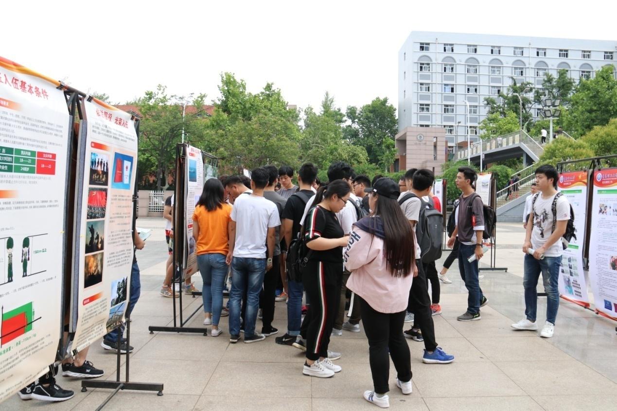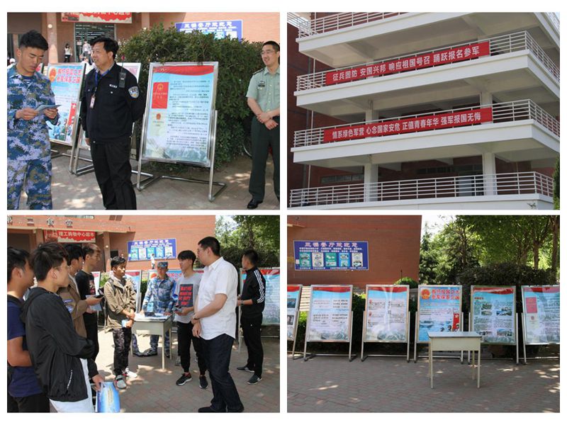 征兵宣传月期间,学校成立了征兵工作领导小组,设立了征兵工作站,学校武装部通过组织召开征兵政策宣讲会、微信推送、悬挂横幅、展板宣传等形式积极开展大学生征兵宣传活动,截止目前已有100余人应征报名。